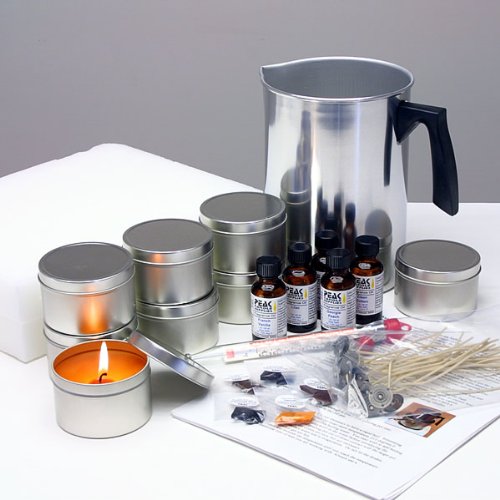 This kit contains everything you need to begin making scented container candles. • 10 Lb slab of IGI 4630 Pre-blended Container wax • 1 Seamless Melting Pot (capacity:2 Lbs) • 8 Seamless 8 oz. Tins with Lids • 1 Glass Thermometer • 2 oz Clean Cotton Fragrance Oil • 2 oz French Vanilla Fragrance Oil • 2 oz Fruit Slices Fragrance Oil • 2 oz Lilac Fragrance Oil • 2 oz Black Raspberry Vanilla Fragrance Oil • 25 Pre-tabbed zinc core wicks (6" 51-32-18) • 2 Yellow Dye Chips (for Clean Cotton) • 2 Ivory Dye Chips (for French Vanilla) • 2 Rust Dye Chips (for Fruit Slices) • 2 Lavender Dye Chips (for Lilac) • 2 Cranberry Dye Chips (for Black Raspberry Vanilla) • Complete Instructions